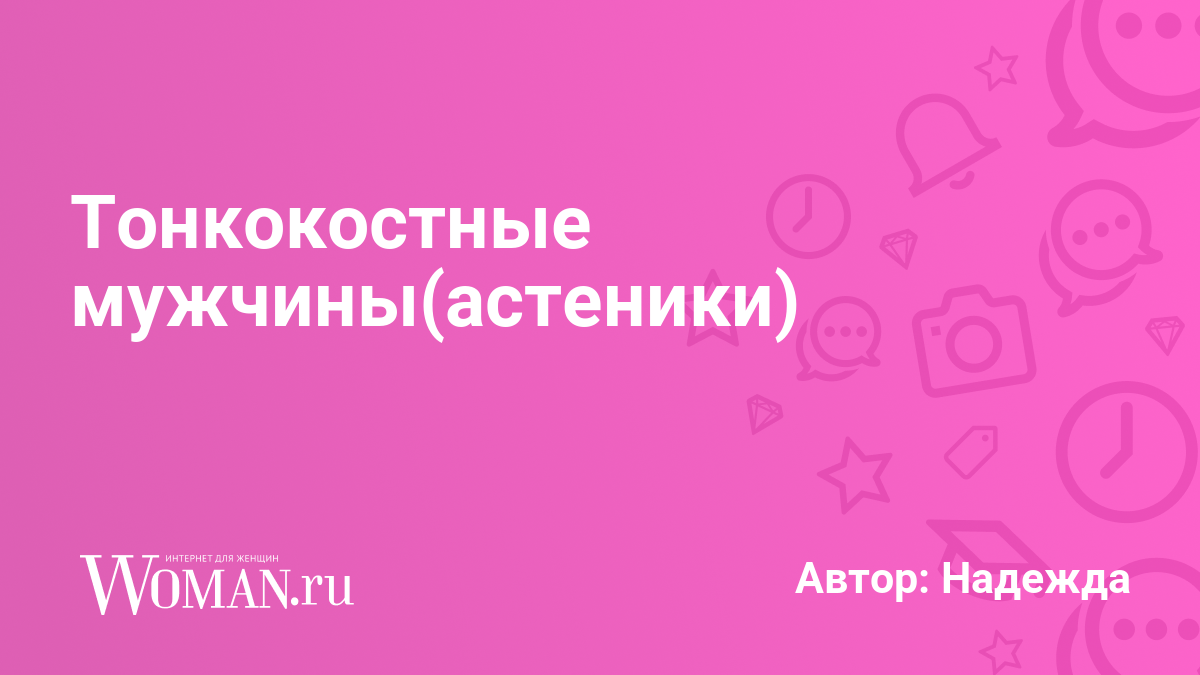 Привет всем! Часто тут вижу темы про рост мужчин...А что насчёт толщины костей?:) Ухаживает мужчина астенического типа сложения. Рост в порядке, процент жира низкий, поджарый такой, но вот само тело как у подростка... При росте 183, весит 68 - 70 кг. Тоненькие запястья, пальчики на руках такие тонюсенькие.. )) Как то не мужественно выглядит что ли... Как человек нравится, очень активный, симпатичный...
