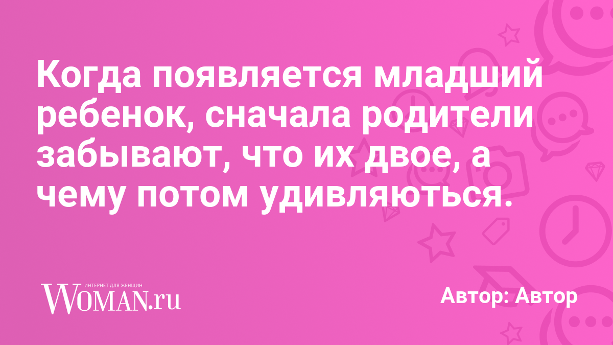 Случайно нашла правдивую цитату в интернете и стало интересно сколько форумчан с ней согласны. В моем окружении к сожалению много семейных пар, которые после рождения второго, забыли о первом. " Если после рождения младшего брата или сестры, родители забыли о том, что теперь у них двое детей, пусть не удивляются когда ребёнок позабудет, что они у него есть ". Как по мне очень точное заявление, речь не о детской ревности, а маразме на уровне - почему эта бесплатная пятилетняя нянька притворяется ребёнком. С детьми так нельзя и если они это знали, почему не довольны, пусть идут к самому любимому младшенькому.