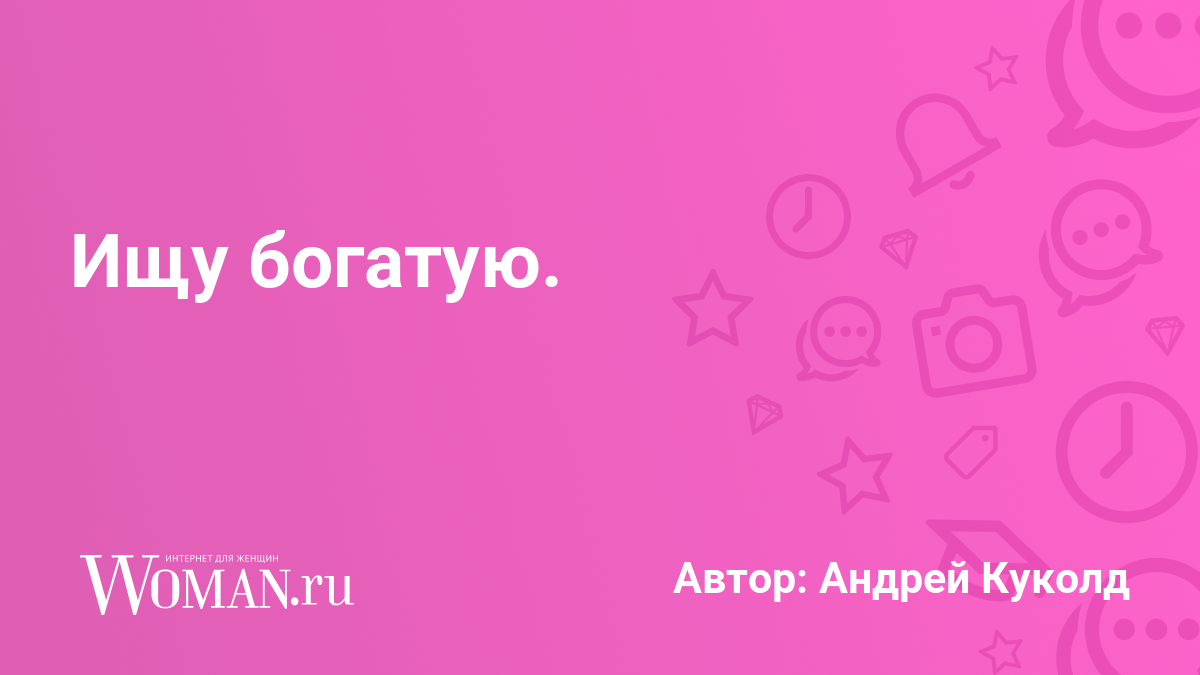 Ищу богатую и обеспеченную девушку. У тебя зп 700-900к в месяц, свой бизнес, дача с бассейном, 2 машины, три квартиры, без детей. Хочу чтобы меня любили и покупали всё что хочу, баловали и ухаживали. Регулярные поездки за границу.