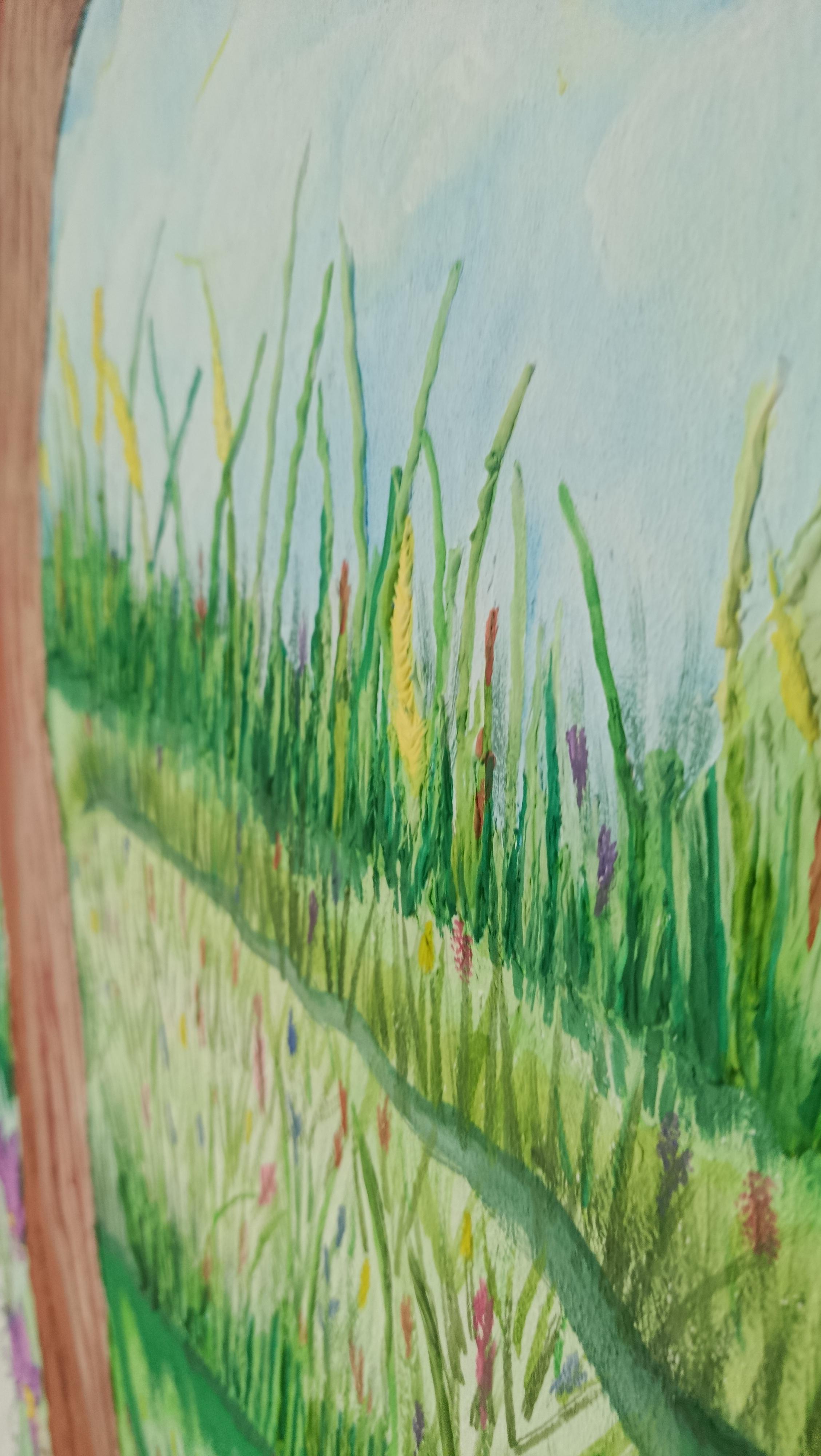 Я превратила штукатурку в холст, а шпатель — в кисть, создав барельефную картину, где каждый мазок и слой формировали объём, оживляя мой замысел. Свет и тени играли особую роль, делая произведение многослойным и живым. Теперь это не просто изображение — это работа, которую хочется ощутить физически, исследовать её линии и материал.