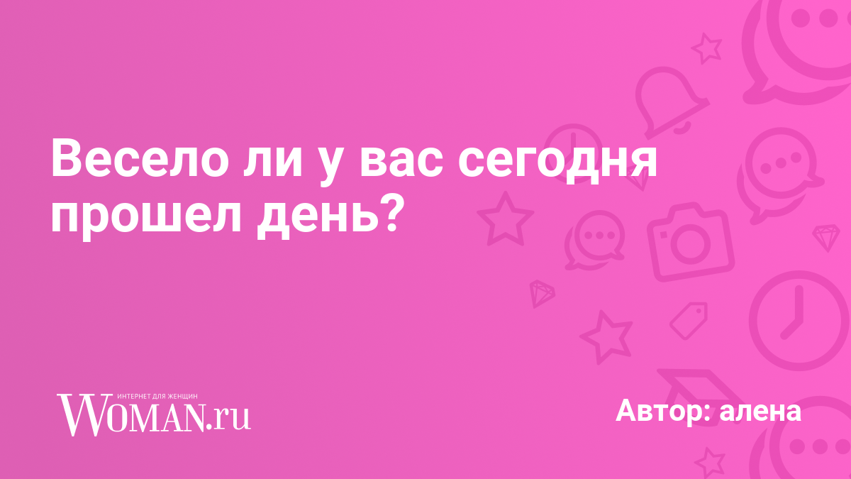 У меня каждый день веселье. Вижу различные контенгент личности о которых можно уржаться, это было бы именно так, если бы на ситуации взглянул бы просто человек но в танке всех событий, который бы явно прочувствовал гамму эмоций от благодарности до посыла матом ввиду несправедливости и феерического пи34ежа в угоду себе, попытке пропиариться так сказать всеми правдами и неправдами отдельных личностей. А мне не весело. Одно и о тоже, только ситуации разные. Смотришь как на пустую стену, когда в этот момент др бы чел допустим хохотал грубо говоря с убогости др человека, но с чсв. мда.. 😥