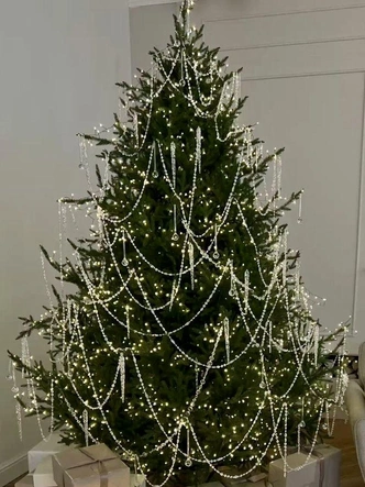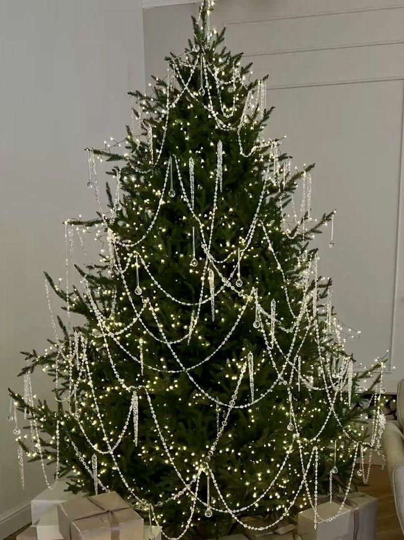 Первый тренд, завоевавший сердца пользователей Pinterest, — это возвращение к аскетичной и чистой красоте зимы. Речь идет об украшении елки длинными стеклянными сосульками. Этот способ, как украсить елку, кардинально отличается от привычного нам с детства. Вместо пышных гирлянд и десятков разноцветных шаров здесь царит минимализм и игра света. На ветви вешают множество прозрачных или слегка матовых сосулек разной длины. Они красиво отражают огоньки гирлянды, создавая иллюзию покрытого инеем дерева после ледяного дождя.