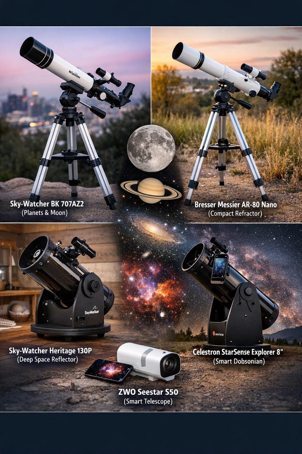 Sky-Watcher и Celestron - лидеры рынка с огромным выбором моделей.
