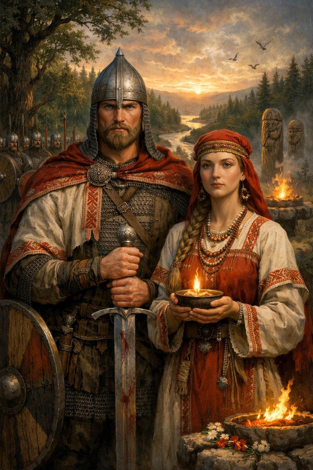 «Сталь воли и чистота крови» Среди бескрайних лесов и серебристых рек, где шепчутся дубы с ветрами и поют соловьи о вечной памяти предков, живут люди, для которых настоящая война начинается не на поле брани, а в глубине собственного сердца. Славяне знали: не меч определяет силу воина, а та твердь, что скрыта под ребрами — воля, сдержанная как зимний лед, и дух, не склоняющийся перед соблазнами.