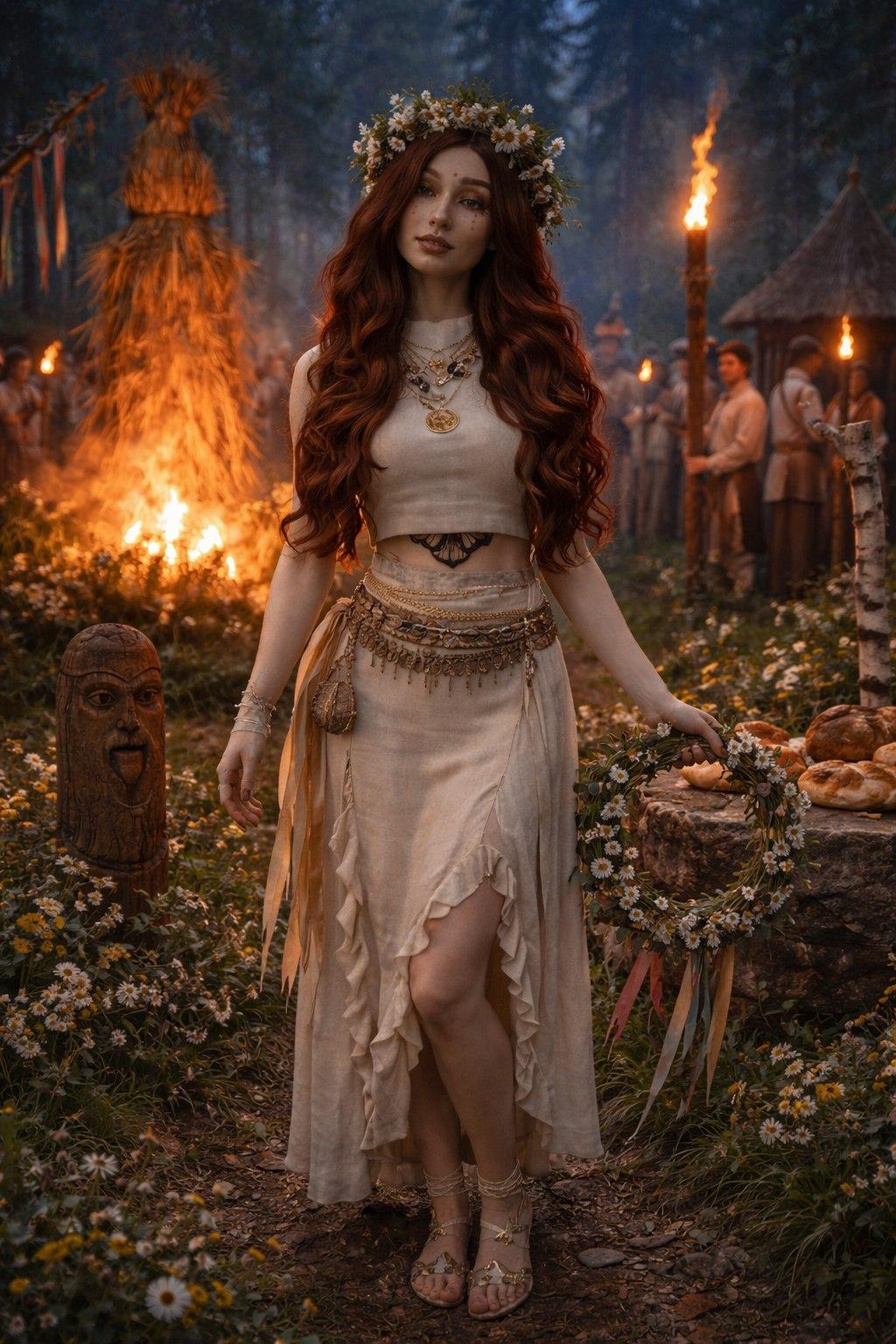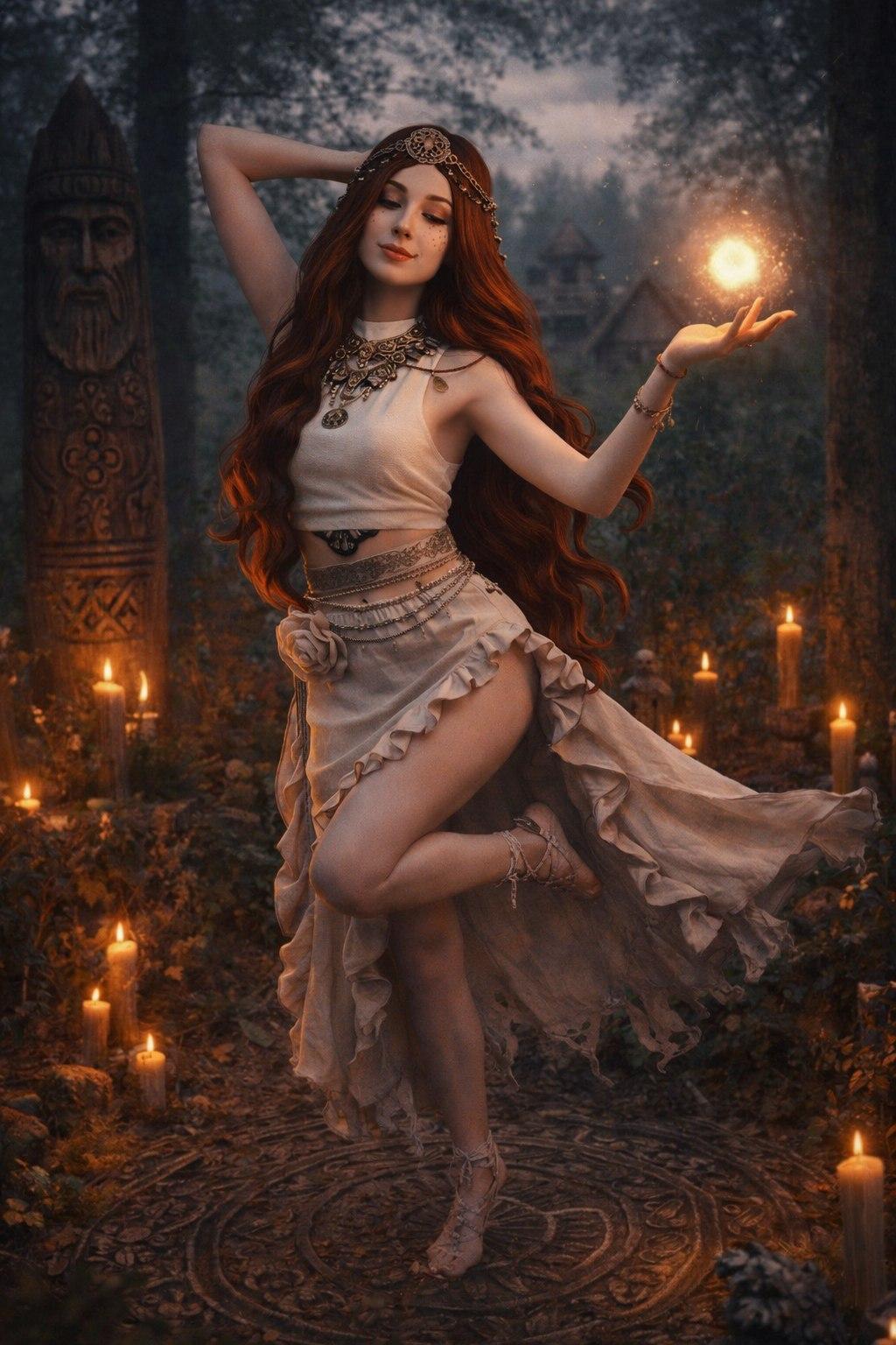 Костюм танцовщицы из накой культуры и эпохи взяли? Точку на лоб ей индусы поставили на границе с Казахстаном?