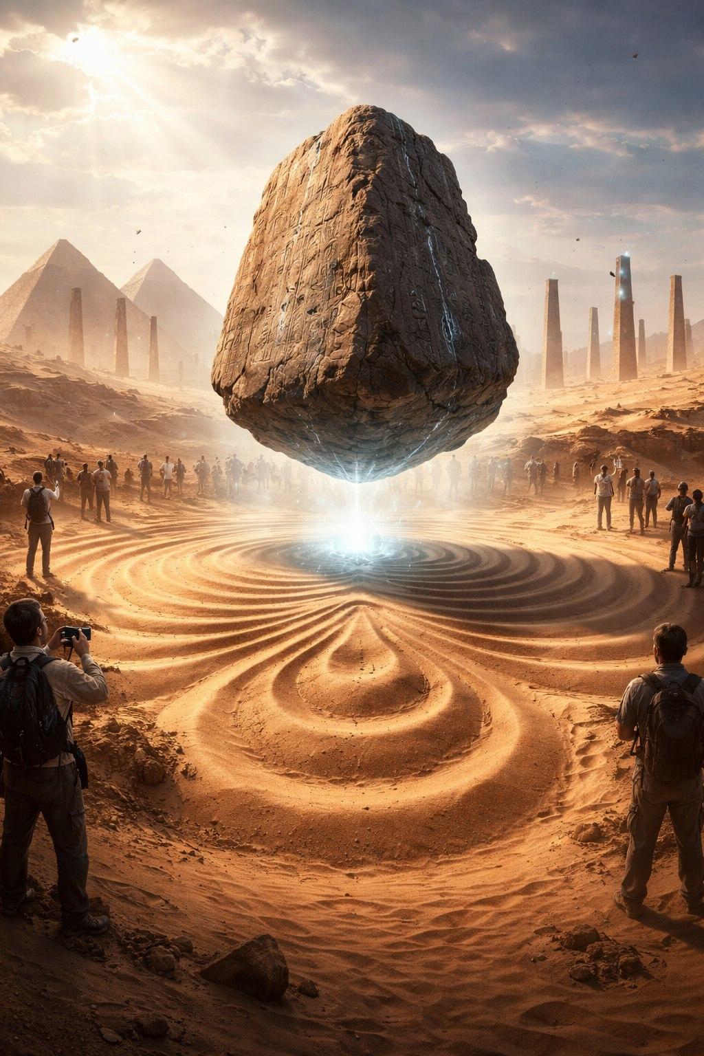 Загадочный камень, левитирующий в египетской пустыне, вызывает волну обсуждений. Очевидцы утверждают, что он не только парит в воздухе, но и испускает невидимые вибрации, проявляющиеся в виде чётких рисунков на песке.