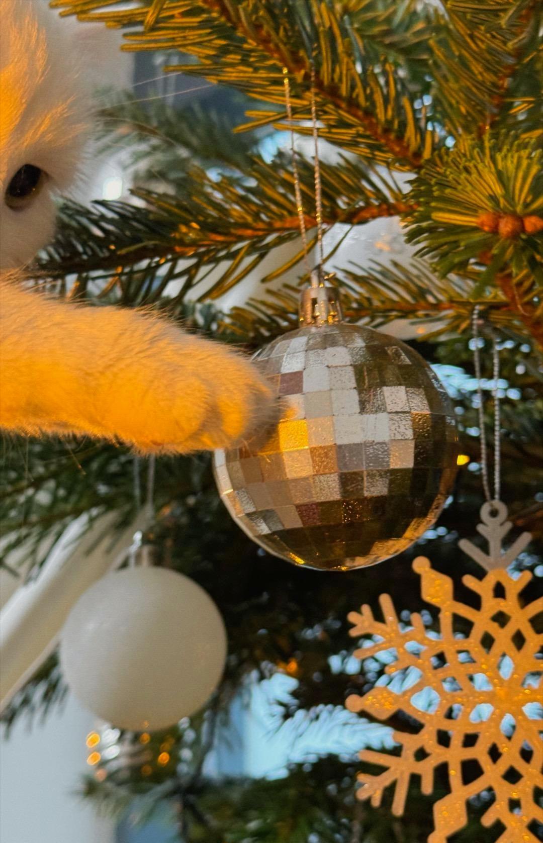 Если не получается полностью отказаться от игрушек на елке, то стоит выбирать пластиковые варианты. Они будут прочнее стеклянных и легче металлических, и обеспечат больше безопасности в игре при нападении котом. Такие игрушки продаются в каждом продуктовом магазине и доступны на разный вкус и кошелек. Кошечка Софа любит их воровать, но после игры украшения можно вернуть обратно на елку в целости и сохранности.