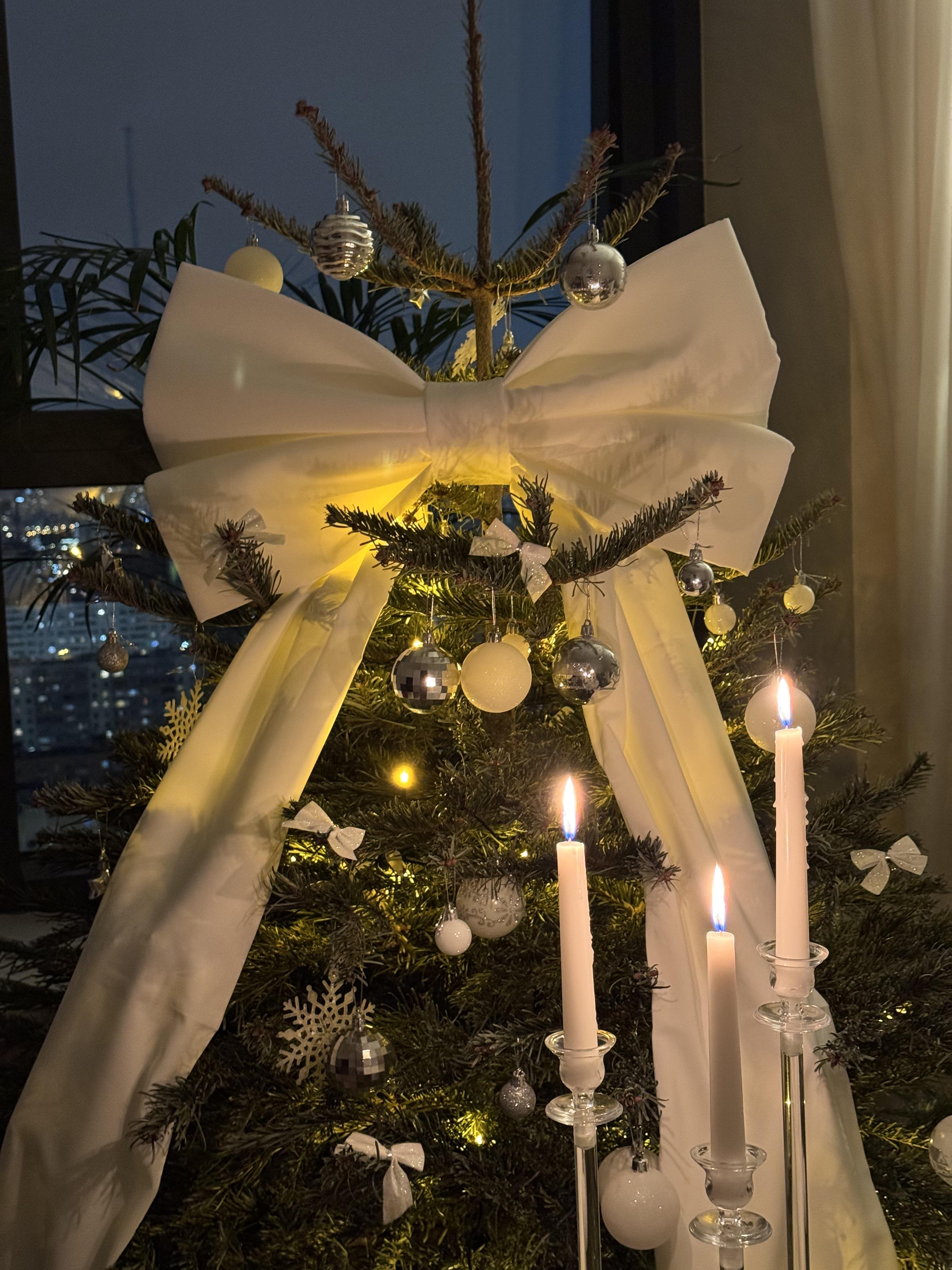 Главный лайфхак для безопасности елки и кота — отказаться от обилия классических стеклянных шаров и украшений. Банты из ткани и текстильные украшения безопасны для котиков. Они добавляют объема и праздничного шарма даже без большого количества шаров. И даже если котик решит внести свои правки в декор, для него будет минимальный риск нанести себе травму.