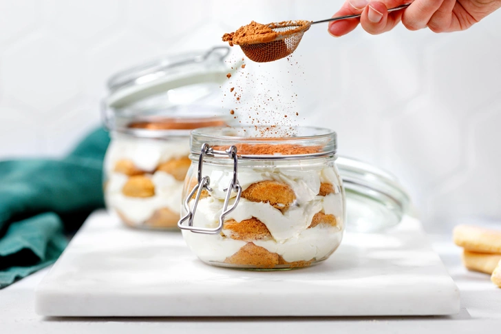 Приготовление — это медитативный процесс, доступный даже тому, кто в кулинарии не силен. Для начала возьмите красивую прозрачную форму, стакан или даже обычную миску, а некоторые совмещают ингредиенты прямо в упаковке. Если вы любите десерты послаще, то советуем смешать йогурт с сахарной пудрой. Далее есть два варианта. Перед укладкой быстро обмакните каждое печенье в прохладный крепкий кофе или эспрессо. Или же добавьте напиток прямо в йогурт. Тут уже на ваше усмотрение, многим кажется второй вариант более легким и быстрым. Остается последний штрих — вставляем печенье прямо в йогурт, не нужно заморачиваться с выкладкой слоев.