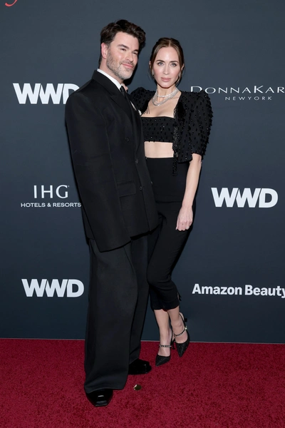 Эмили Блант в элегантном наряде Carolina Herrera пришла поздравить еще одного номинанта — специалиста по уходу за лицом Гэвина Маклеода-Валентайна. Он получил премию Skin Savior за свой фирменный метод массажа, который очень популярен среди голливудских звезд в период наградного сезона.