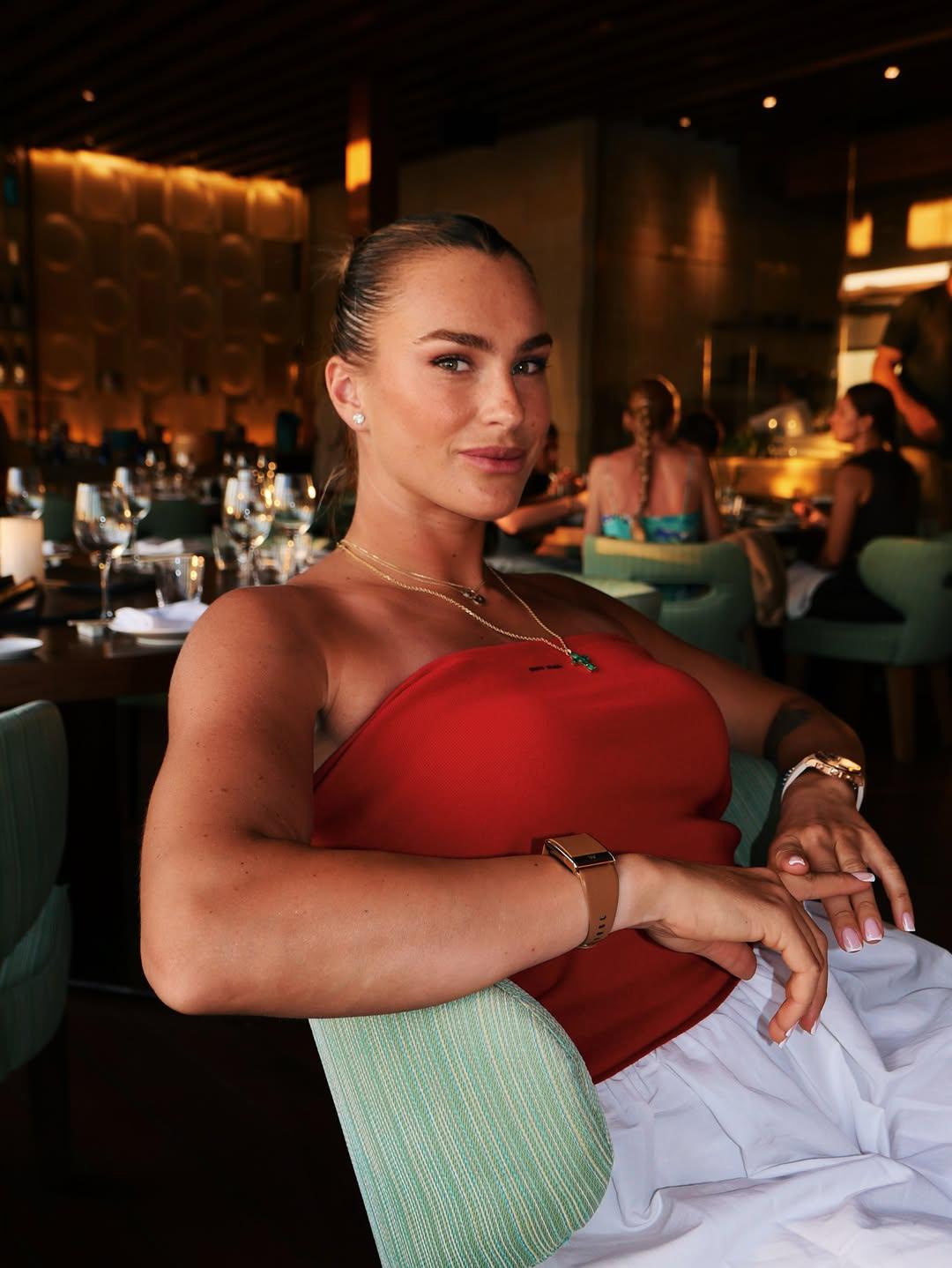 Пока в Сети все спорят о том, милым был намек Арины Соболенко или унизительным для нее самой, вспомним историю любви этой горячей пары. Отношения с Георгиосом Франгулисом спортсменка подтвердила в мае 2024 года, а начался этот роман с профессионального сотрудничества. Франгулис — основатель компании, которая производит продукты здорового питания, и его бренд спонсирует теннисистку. Сначала все думали, что Франгулис так часто сопровождает звезду на турнирах, потому что Арина — еще один его успешный бизнес-проект, однако дело оказалось в любви.