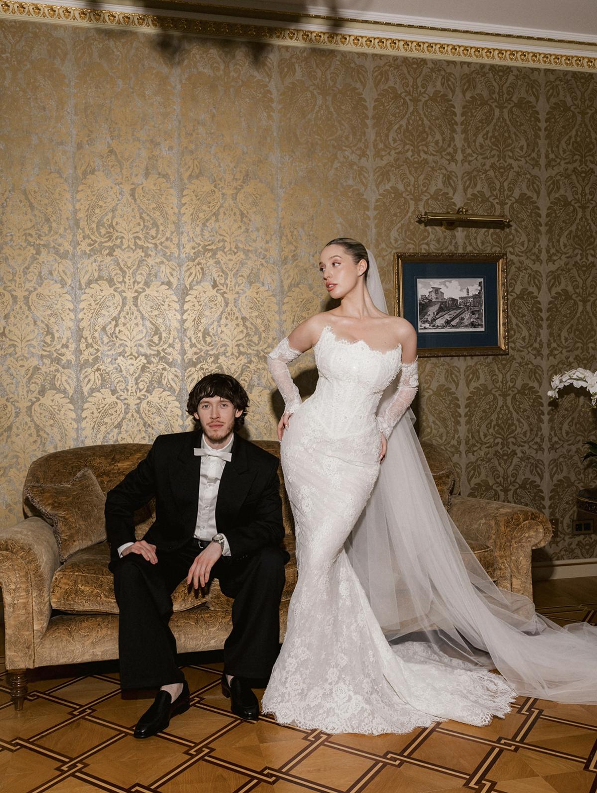 Кому так точно доверилась Вейгель, так это своим стилистам — братьям Илье и Никите Хованским, превратившим ее в настоящую принцессу — дерзкую и романтичную одновременно. Адель рассказывала, что никогда в жизни не представляла, какой невестой хочет быть, поэтому с легкостью согласилась на эксперименты. Для официальной части она выбрала платье Belik, а позже переоделась в жакет с крыльями ангела и микрошорты от Ильи Мигмуна.