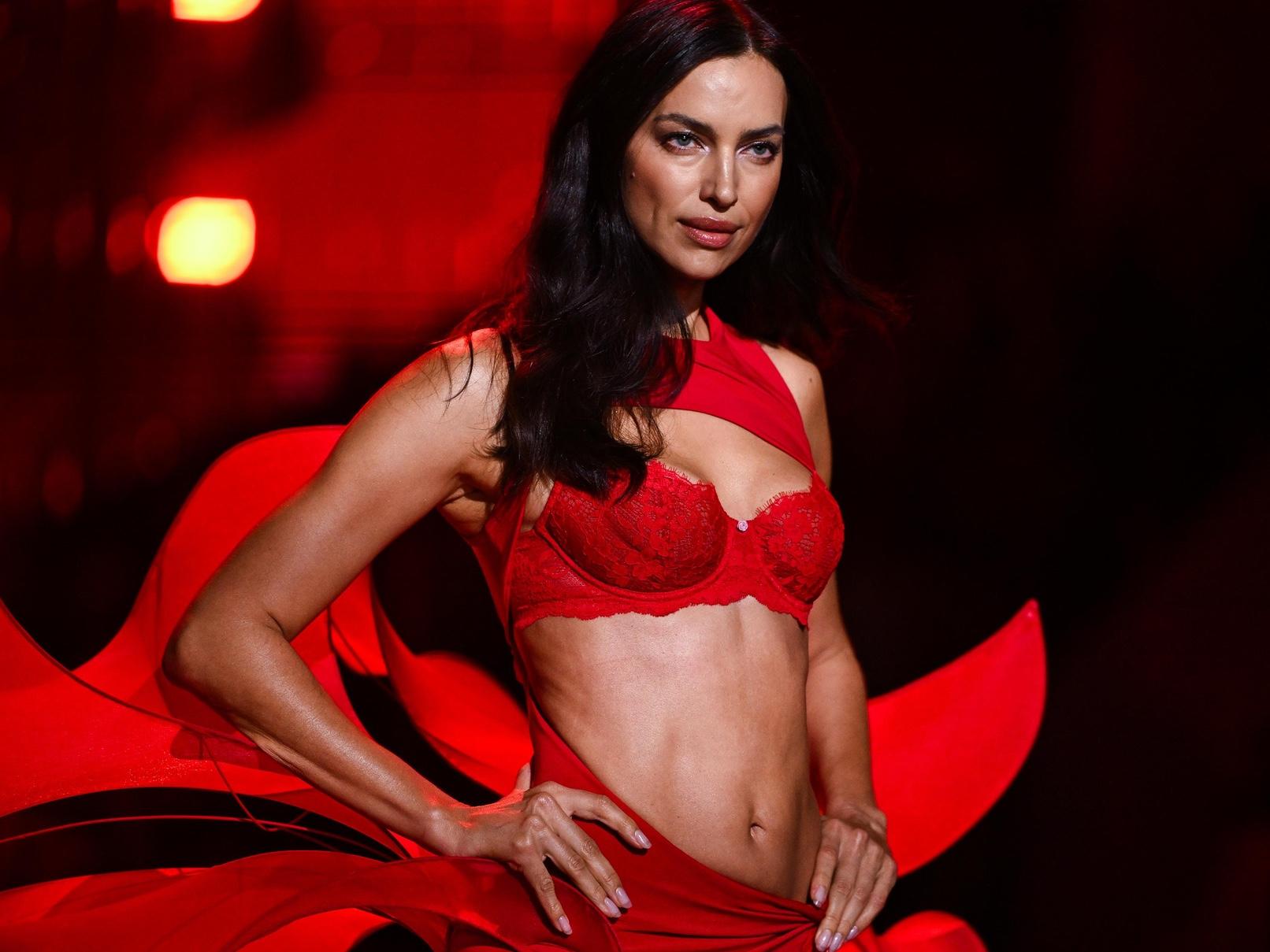А вот годом ранее Ирина блистала в образе настоящей звезды: прозрачное боди и объемную накидку украшали сверкающие черные звезды. Но, конечно, самым запоминающимся и ярким для многих стал ее дебютный выход почти десять лет назад, ведь с ним у Ирины связано и одно из самых важных событий личной жизни. Именно на подиуме Victoria’s Secret она рассекретила свою беременность от Брэдли Купера.