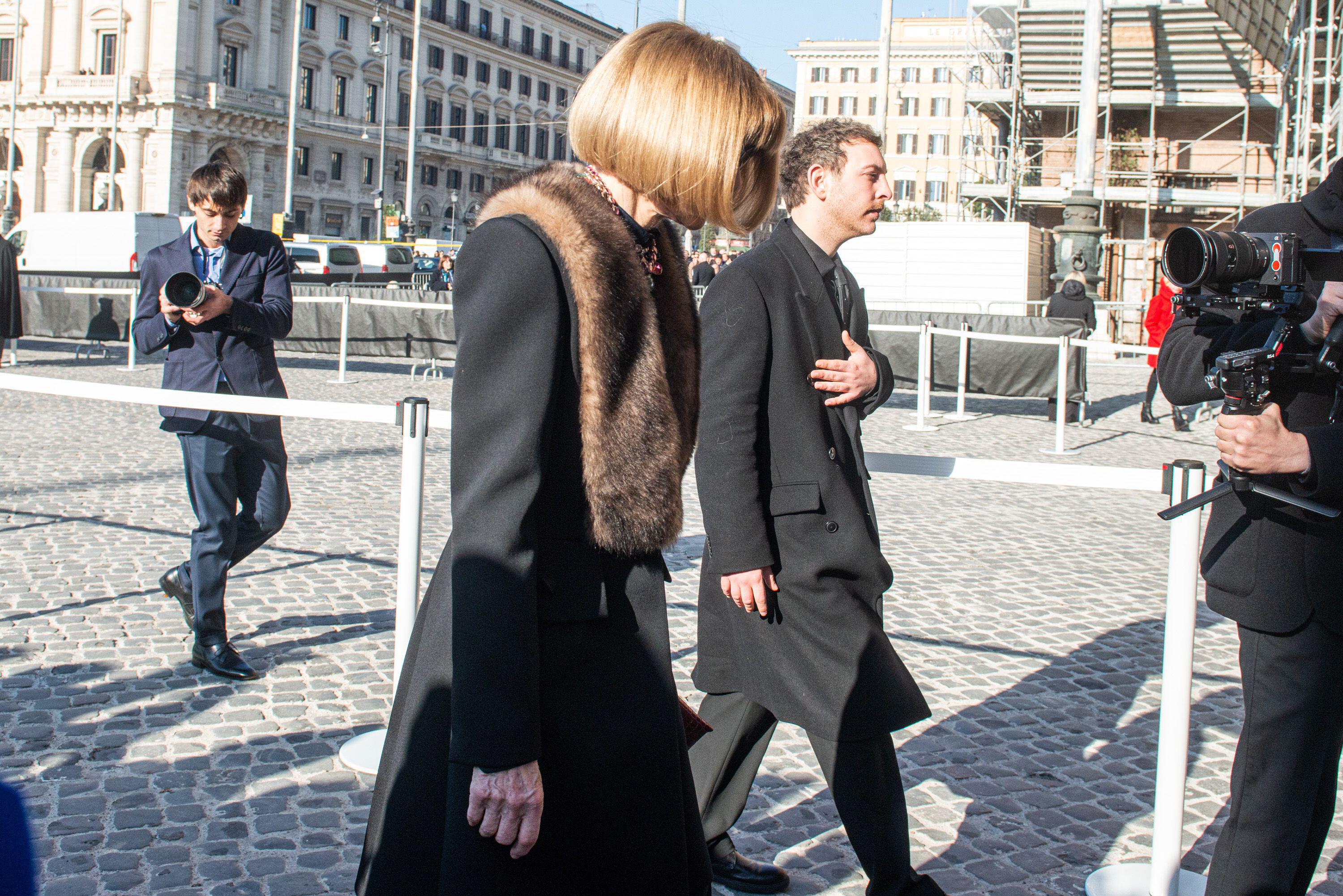 Не смогла остаться в стороне от этой трагедии и Донателла Версаче, которая назвала смерть своего коллеги «концом прекрасной эпохи». Именно Версаче одной из первых приехала на траурную церемонию прощания с кутюрье, а днем ранее появилась на улицах Рима в костюме в фирменном цвете Валентино Гаравани.