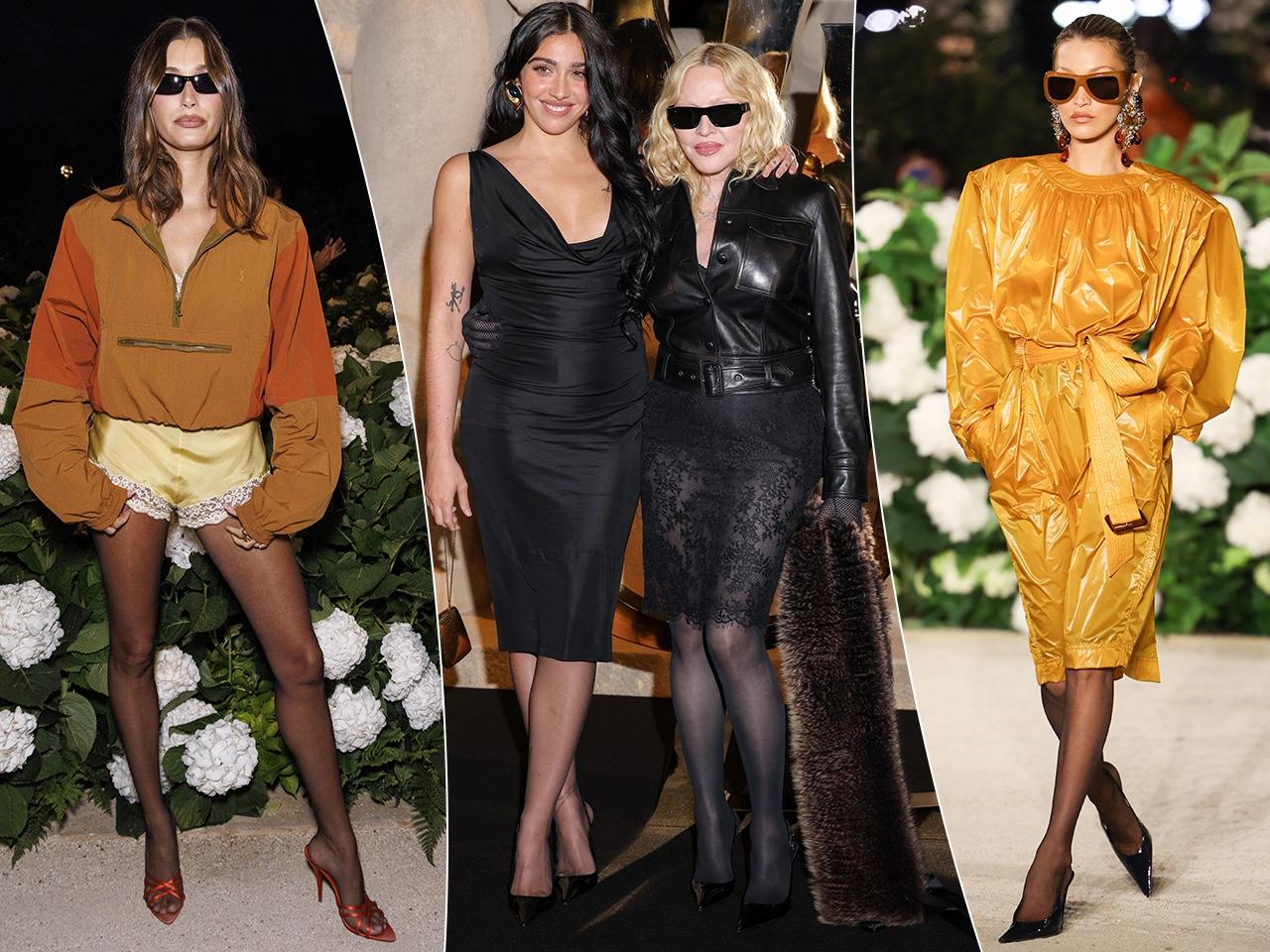 Помимо Беллы звезд на шоу Saint Laurent было так много, что рассказывать о каждом мы можем до вечера. Чего только стоят Мадонна в «голой» кружевной юбке с непривычно скромной дочерью Лурдес Леон, Катрин Денев в компании Жана Поля Готье, Хейли Бибер в шелковом ромпере, модница Зои Кравиц, главный русский любимец всего Голливуда и почетный гость всех масштабных показов Марк Эйдельштейн, Кейт Мосс с дочерью Лилой, Линда Евангелиста, Charli XCX, Нади ли Коэн, Розэ, Аня Рубик, Карла Бруни, Алекса Чанг, Ева Герцигова, Айрис Лоу и многие-многие другие селебрити, украсившие первые ряды показа. Ищите все фото в нашей фотогалерее.
