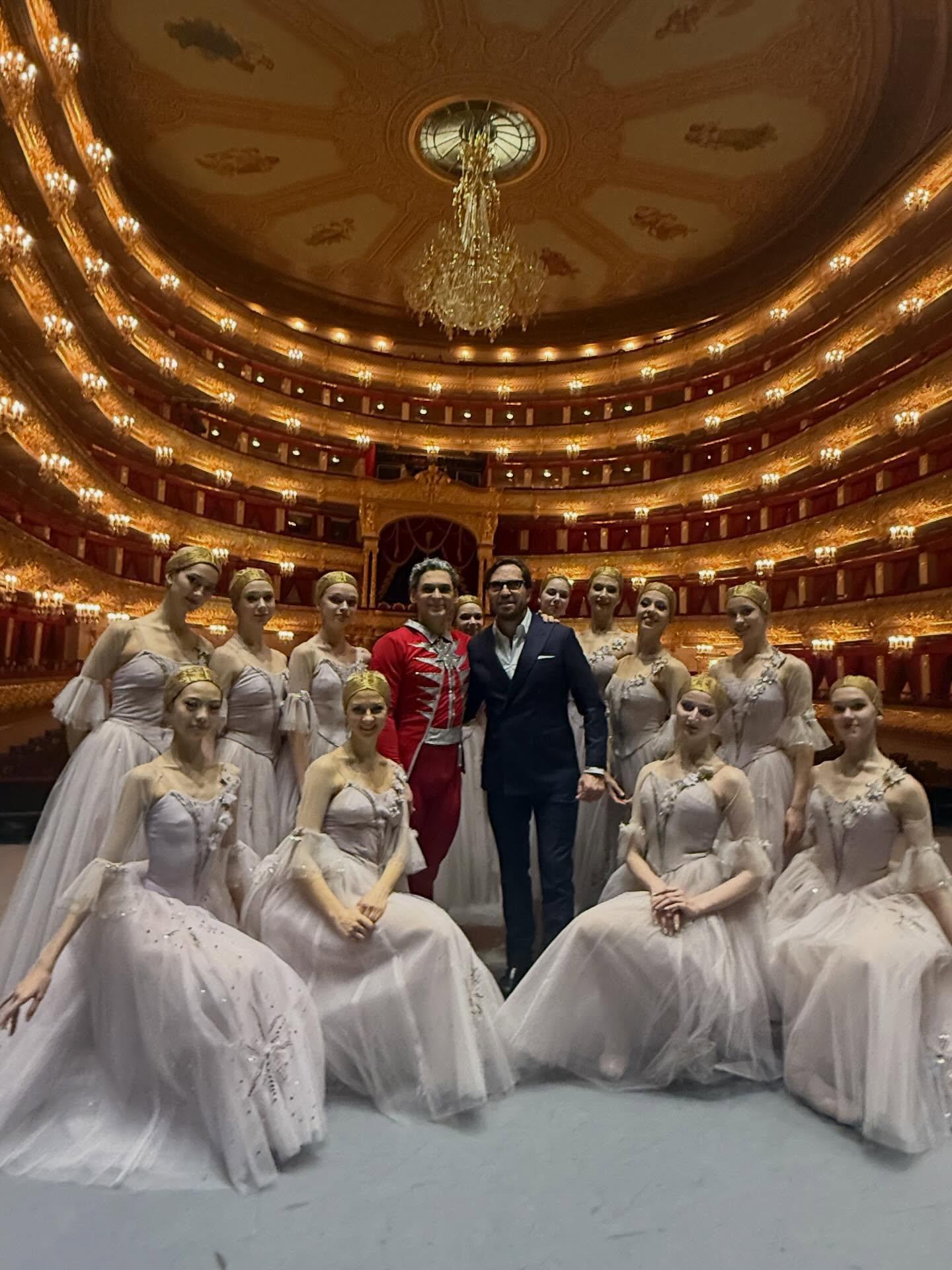Елена и Антон Пинские с детьми на «Щелкунчике» в Большом театре