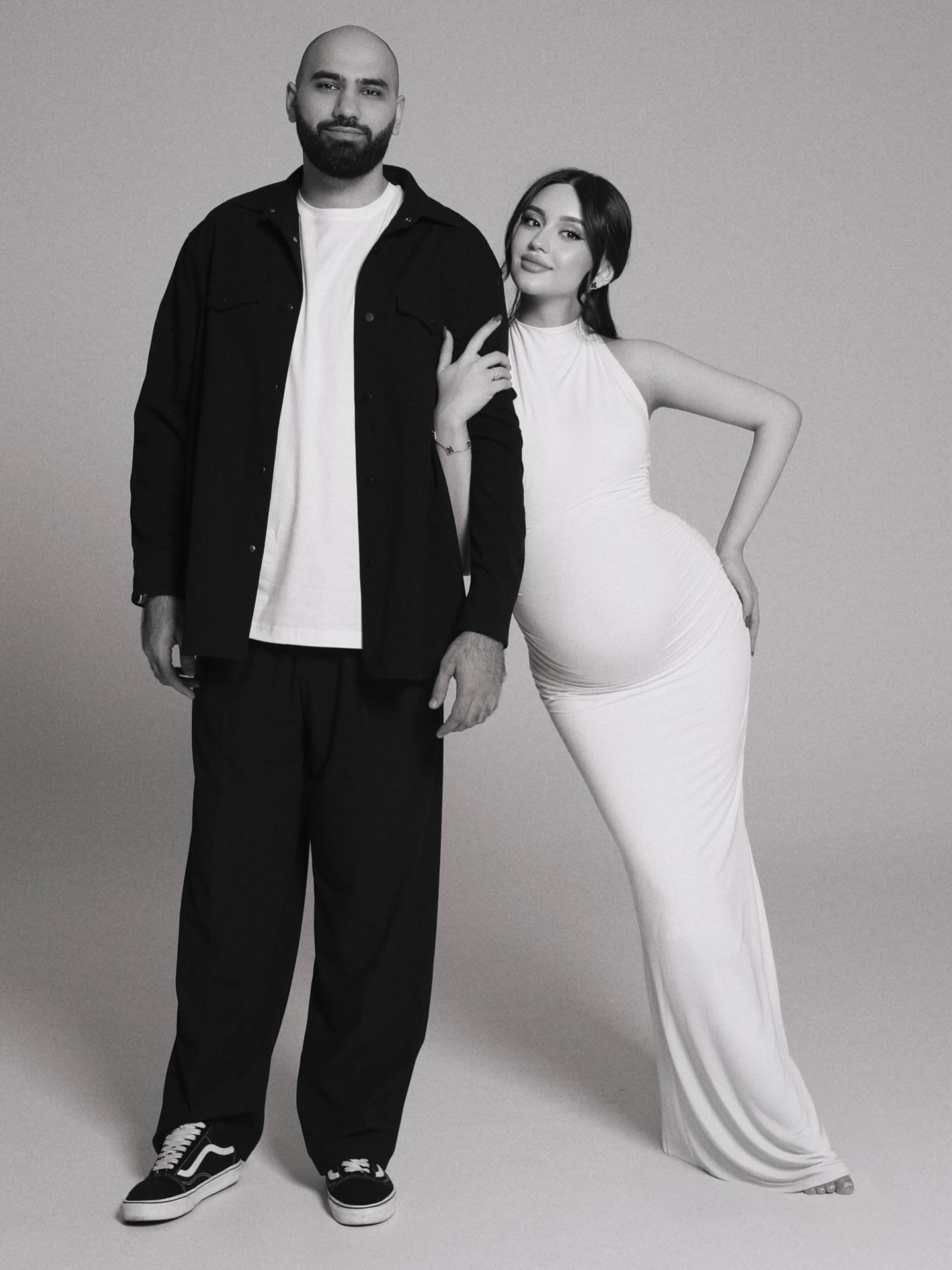 В личном блоге исполнитель хита «Птичка» опубликовал серию трогательных снимков с супругой. На кадрах Эмили позирует в облегающем черном и белом платьях, которые особенно подчеркнули ее округлившийся живот.