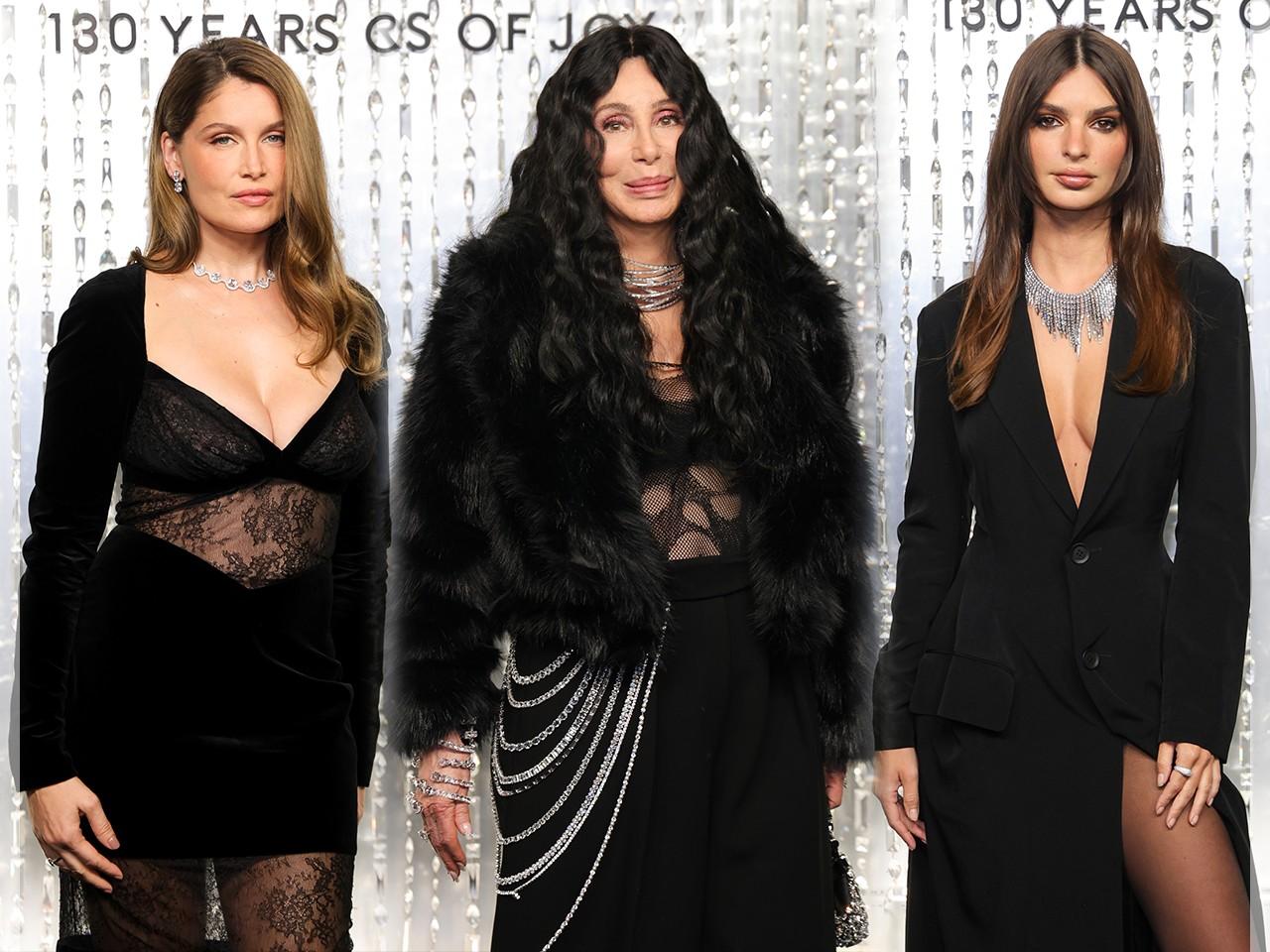 Для выхода влюбленные выбрали парные total-black образы. Исполнительница хита Believe появилась на дорожке в сетчатом топе, широких брюках с цепочками и укороченной шубе. Свой образ звезда дополнила многослойным колье-чокером и браслетом в таком же стиле. Волосы певица уложила в мелкие волны. Эдвардс был одет в классический блейзер с атласными лацканами и брюки.