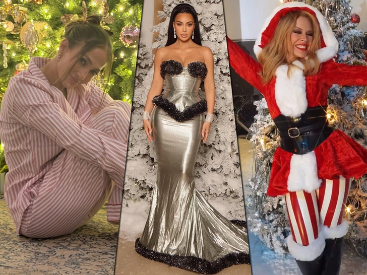 Дженнифер Лопес в этом году решила устроить уютное семейное Рождество. На фотографиях артистка позировала в розово-белой полосатой пижаме, с аккуратным пучком волос, украшенным бархатным бантом, и почти без макияжа. Она сидела босиком на ковре, обняв колени, перед огромной елкой. Дерево, увешанное золотыми и нежно-розовыми шарами, мерцающими лентами и гирляндами, создавало волшебную, почти сказочную атмосферу, а у его подножия лежали аккуратно завернутые подарки. Другие члены семьи также были в розово-белых пижамах. Однако позже Дженнифер все же переоделась в потрясающее красное платье.