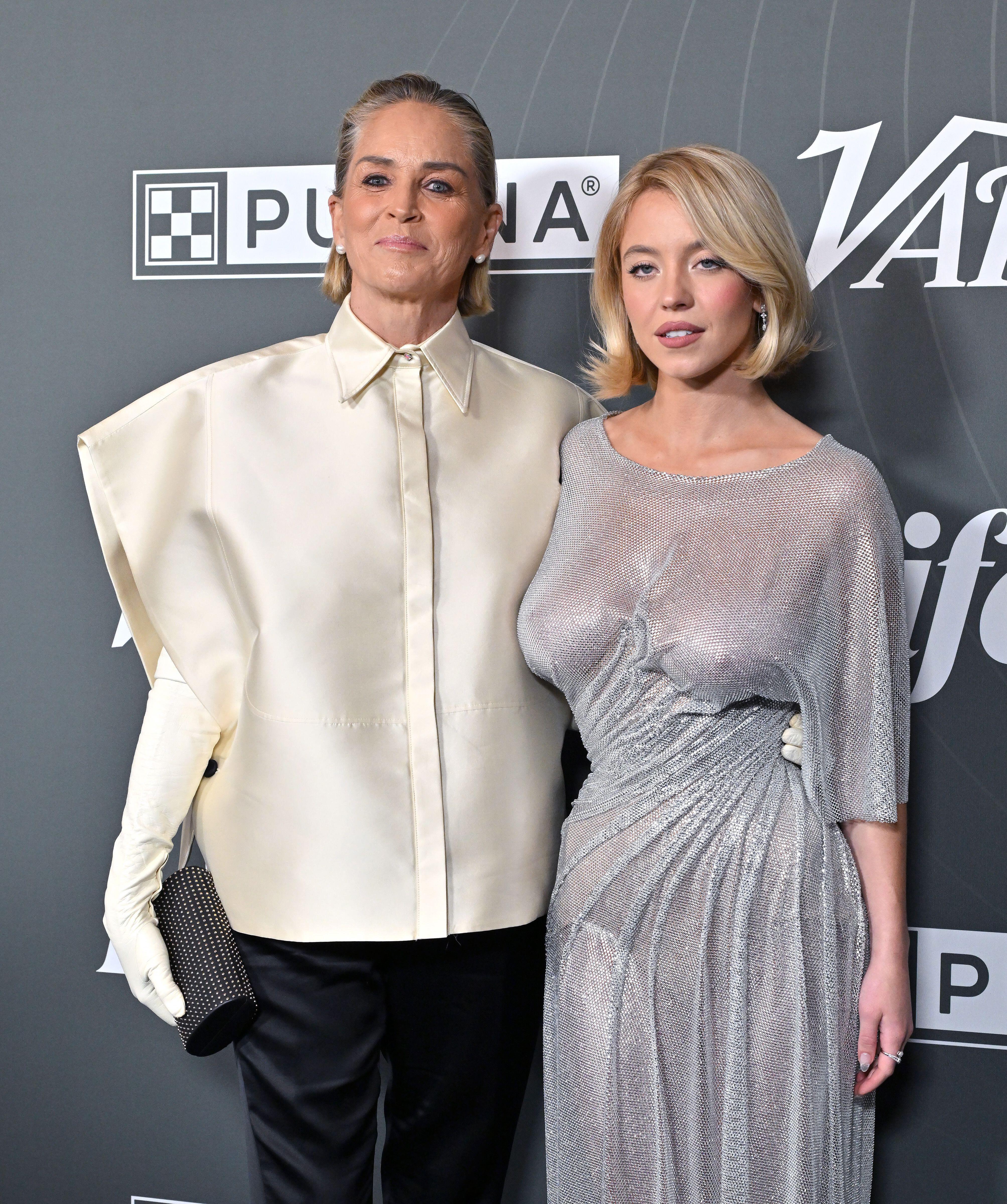 Затем Шэрон Стоун, блиставшая на премии в необычной атласной блузе и перчатках цвета шампанского, зауженных брюках и зеленых бархатных туфлях, пригласила за наградой Сидни Суини. 28-летняя блондинка посвятила свою речь чемпионке по боксу Кристи Мартин, чью роль она исполнила в новой биографической спортивной драме: