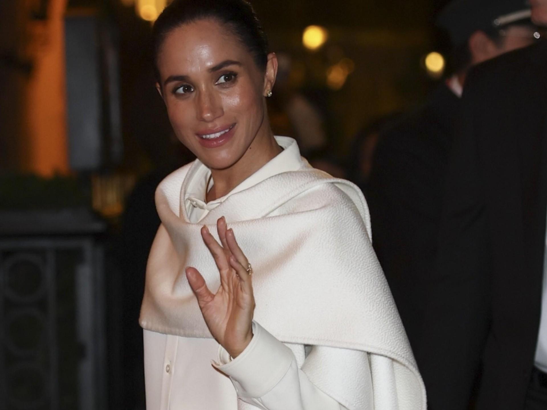 Спустя час опоздания герцогиня Сассекская появилась в белом пальто, которое дополнили широкие брюки и свободная рубашка в тон — все авторства Пьерпаоло Пиччоли. В руках она держала клатч, ее волосы были собраны в тугой пучок. Последние новости о Меган Маркл сообщают, что на шоу она появилась без принца Гарри.