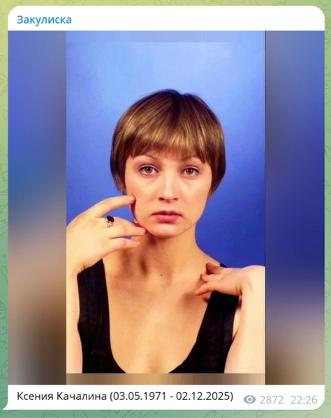 2 декабря 2025 года стало известно о смерти актрисы Ксении Качалиной. Первыми об этом сообщил , разместивший портрет и дату ухода артистки.