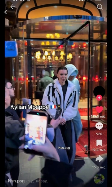 Толпа журналистов окружила один из отелей в центре города. Сначала может показаться, что они снимают Оксану, но на самом деле их целью был Киллиан Мбаппе. Именно он выходит вслед за Самойловой и, стремясь поскорее попась в машину, беспардонно толкает ее плечом.