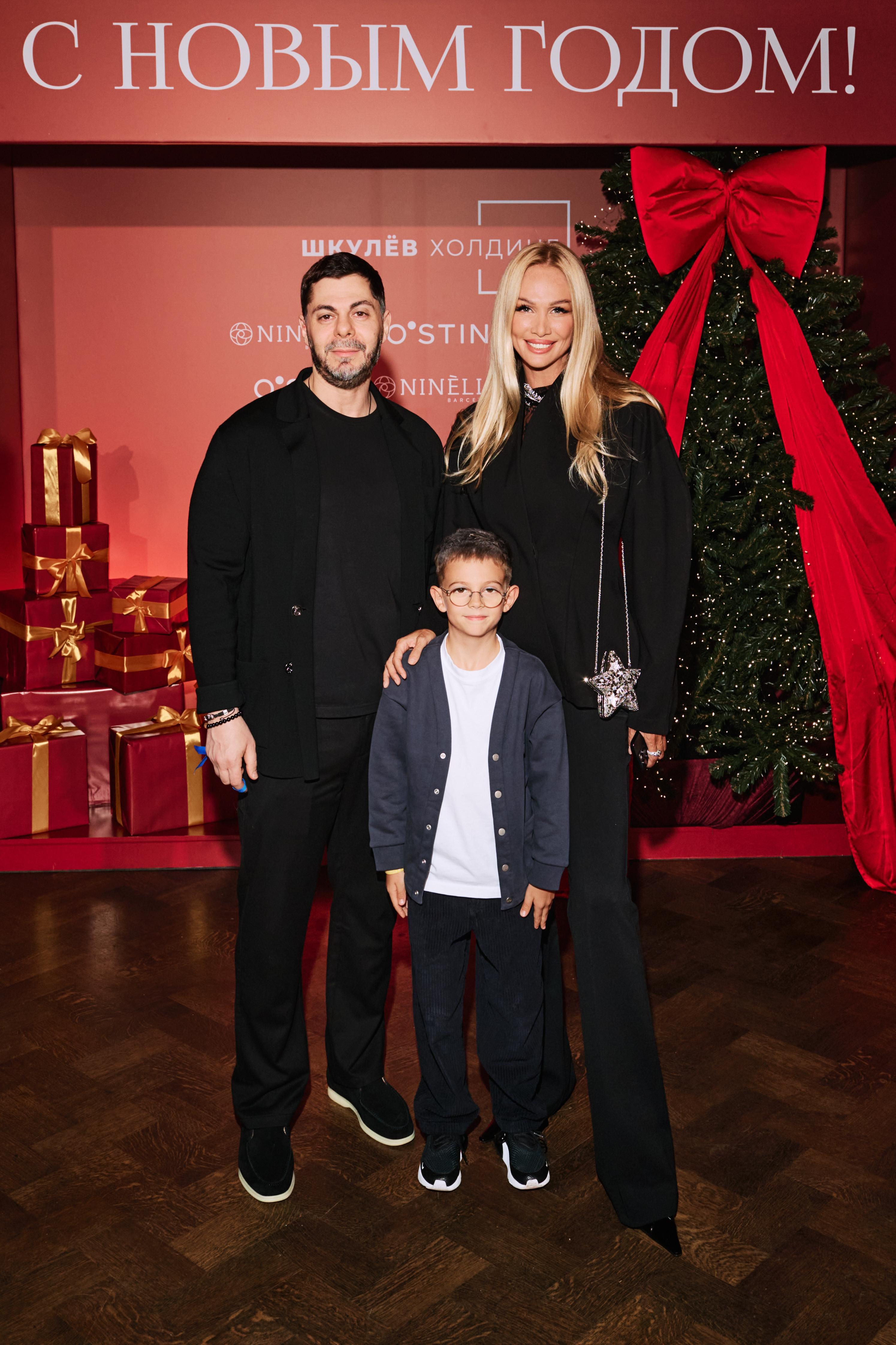 Виктория, облаченная в total-black и с блестящей сумкой-звездой, с удовольствием позировала фотографам, 6-летний Марк-Лионель тоже был рад всему происходящему (но уже хотел скорее присоединиться к эльфам с большими ушами), а вот Игорь сторонился камер. Он не любит публичность и предпочитает оставаться в стороне. Впрочем, ради такого красивого праздника сделал исключение — и даже не отказал в паре кадров.