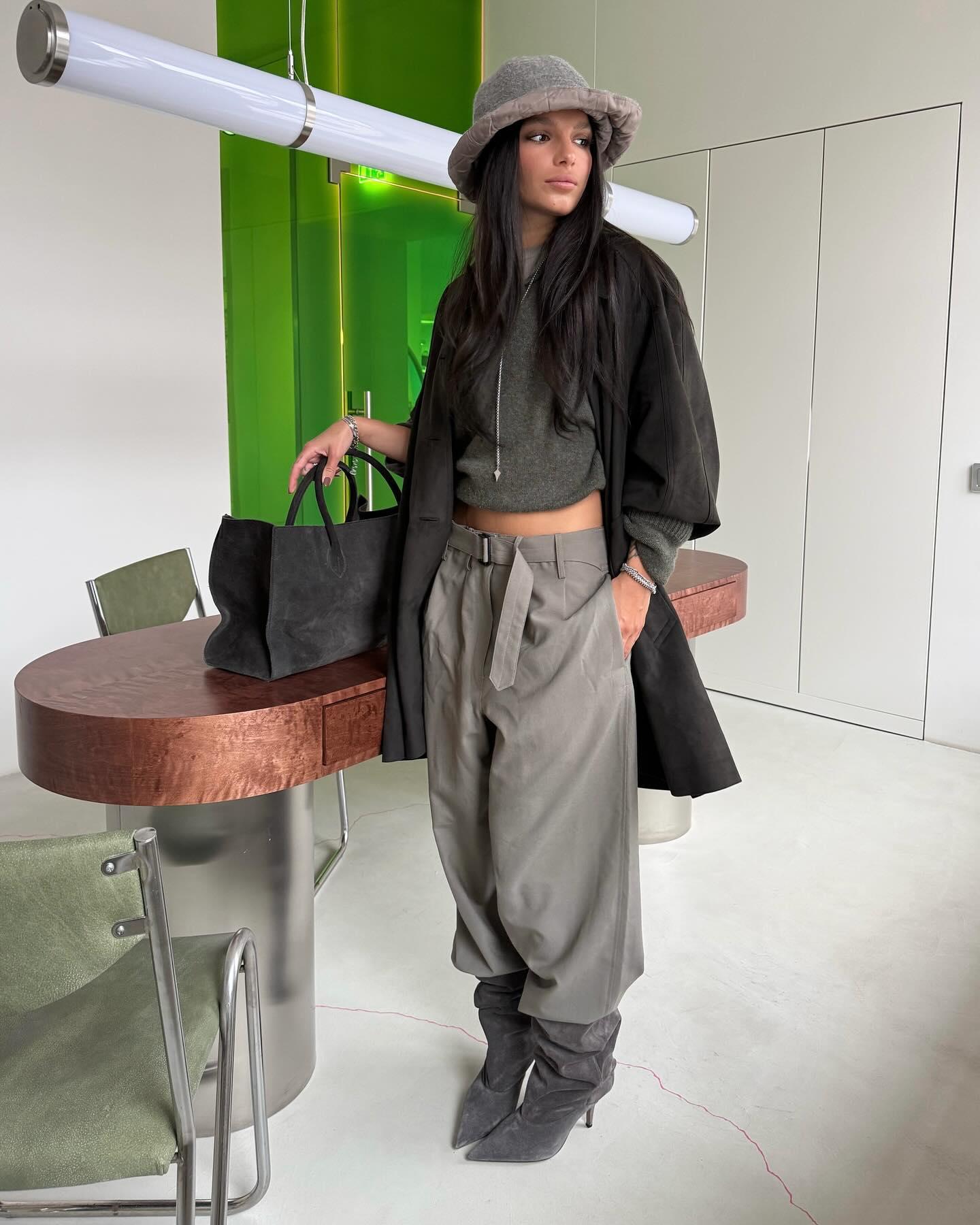 К тому же замшу давно перестали считать обычной альтернативой коже. Зачастую она смотрится в разы эффектнее. Ее матовая поверхность, играющая со светом, придает любому образу тактильную глубину и делает вещь визуально более дорогой. И хотя многие до сих пор побаиваются ее капризного характера, главный миф пора развеять: современная замша с качественной пропиткой стала гораздо более практичной и устойчивой к непогоде. К тому сегодня на рынке представлено множество эко-вариантов, которые смотрятся ничуть не хуже. Именно поэтому звезды, фэшн-инфлюенсеры и простые модницы одна за другой включают ее в свои луки, показывая всю широту стилевых возможностей материала.