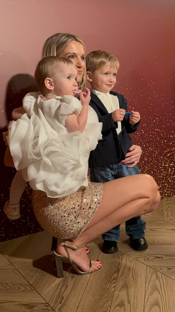 Виновница торжества встречала гостей не одна, а в компании своих детей. И это первое появление ребят на публике. До сегодняшнего вечера знаменитость скрывала лица 3-летнего сына и годовалой дочки.