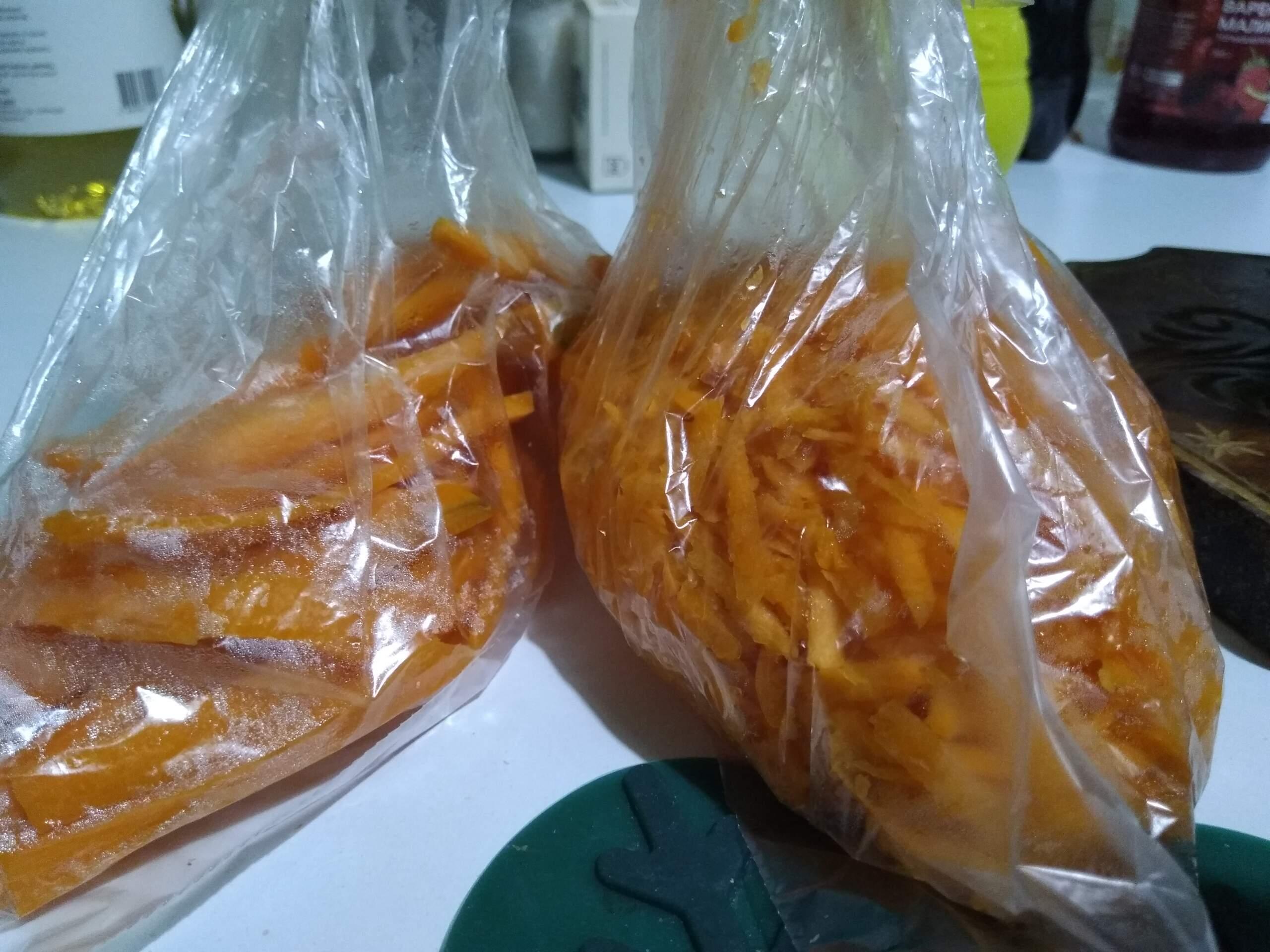 Написала в смс, что надо почистить на тёрке морковку и заложить в морозильник небольшими партиями (так ей удобнее готовить, а готовит она невероятно прекрасно!), часть морковки полосками порезать — сразу и сделал после уборки в квартире, намывания посуды и так далее.