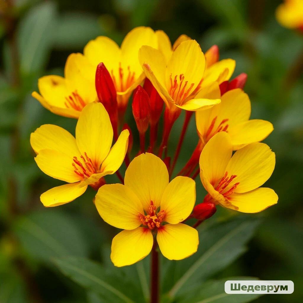 Но, несмотря на это, у нас есть и редчайшие цветы, которые растут лишь в нескольких местах (одно из них - у озера Морских змей). Это жёлтые цветы с красными стебельками. У нас они называются Сула.